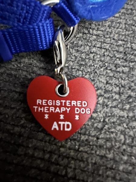 “Please pass our ENORMOUS thanks to Roxie and Stanley and their gracious humans for stopping by the library for De-Stress Fest on Tuesday. The dogs were the goodest girl and boy as they socialized with 227 of our stressed-out students during the hour. We had students waiting for them even before they arrived – they so needed those moments with Roxie and Stanley. I know your members took time out of their busy schedules to stop by over their lunch hours, and that is so very very appreciated.”